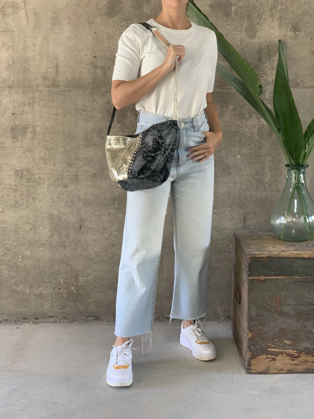 Bandolera de tamaño pequeño con tira regulable . Medidas aprox: Alto : 22 cm Ancho : 33 cm Base redonda 16x16 Largo de tira : 108 cm